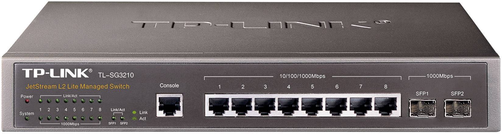 Der JetStream™-Managed-Gigabit-L2-Lite-Switch TL-SG3210 von TP-LINK verfügt über 8 10/100/1000-Mbps-Ports. Der Switch bietet eine hohe Leistung auf QoS-Unternehmens-Niveau, erweiterte Sicherheitsstrategien und reichlich Layer-2-Managementfunktionen. Darüber hinaus ist der Switch ist serienmäßig mit 2 Gigabit-SFP-Slots ausgestattet, was Ihr Netzwerk flexibel erweitert. Der TL-SG3210 ist die ideale kostengünstige Netzwerk-Lösung für kleine und mittelgroße Unternehmen.